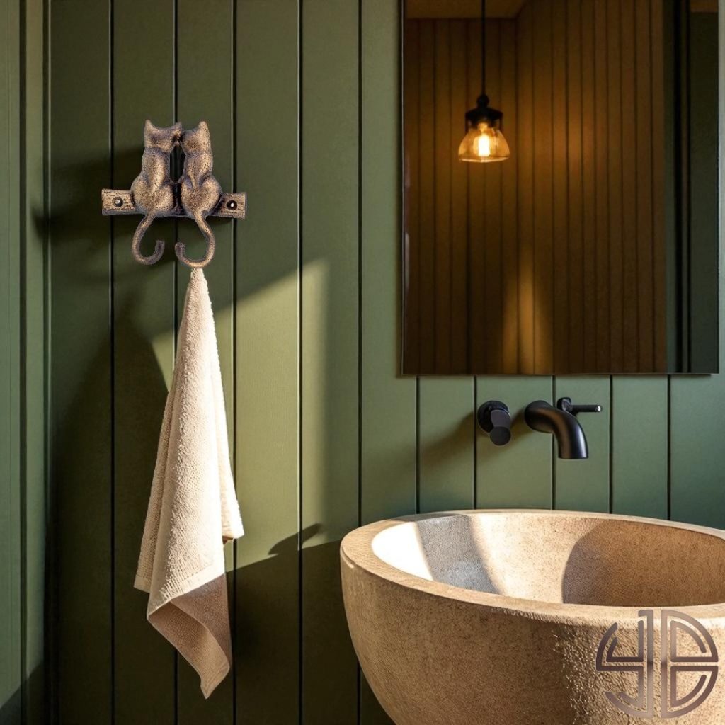 İkiz Kedi Askı, işlevsel bir detaydan öte, mekânın duvarına mimari bir karakter kazandıran zarif bir dokunuştur. Arka arkaya oturmuş iki kedinin silüeti, hem doğanın zarafetini hem de nostaljik bir huzuru yansıtır. Özellikle rustik, butik veya romantik tasarıma sahip ev ve butik otel girişlerinde, mutfaklarda ya da antrelerde kendine özel bir yer bulur. Kuyruklardan oluşan kancalar, yalnızca anahtarlık veya havlu değil; aynı zamanda sıcak bir atmosferin sembolünü taşır. Simetrik formuyla bu askı, mimari bütünlüğe estetik bir katkı sağlar.