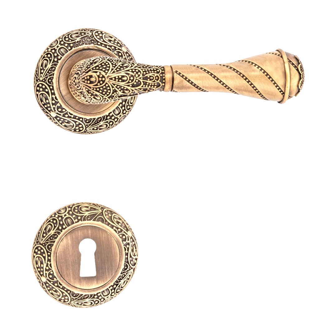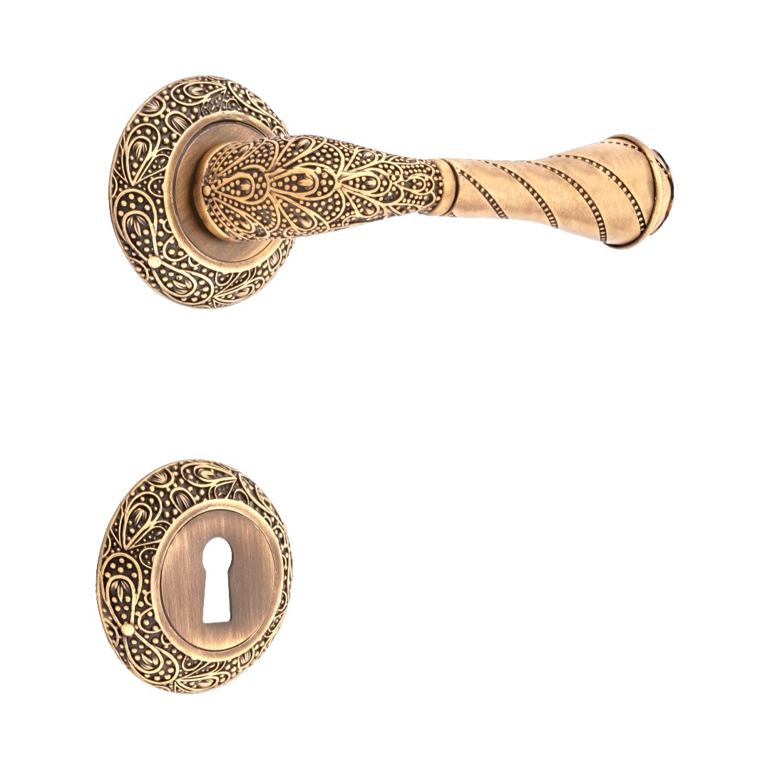 Rozet ve anahtar deliği etrafındaki desen şeridi, hem yüzey sürekliliği sağlar hem de dekoratif bütünlük oluşturur.