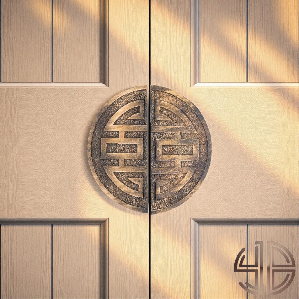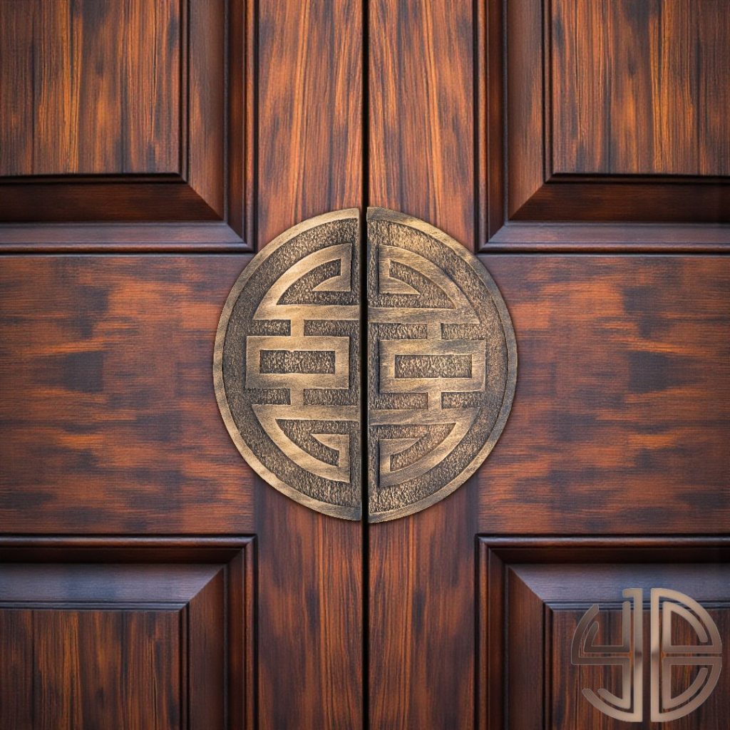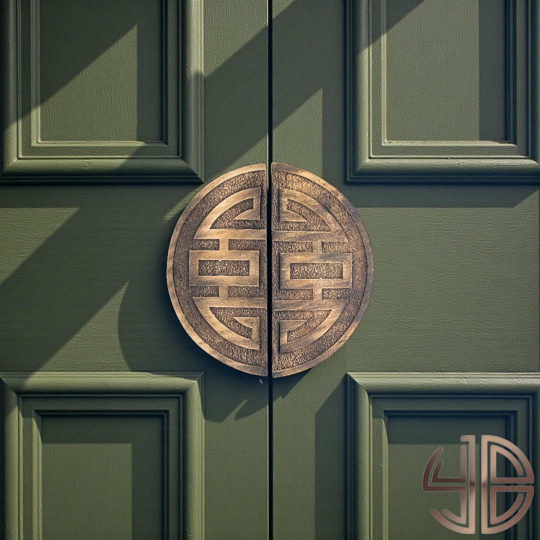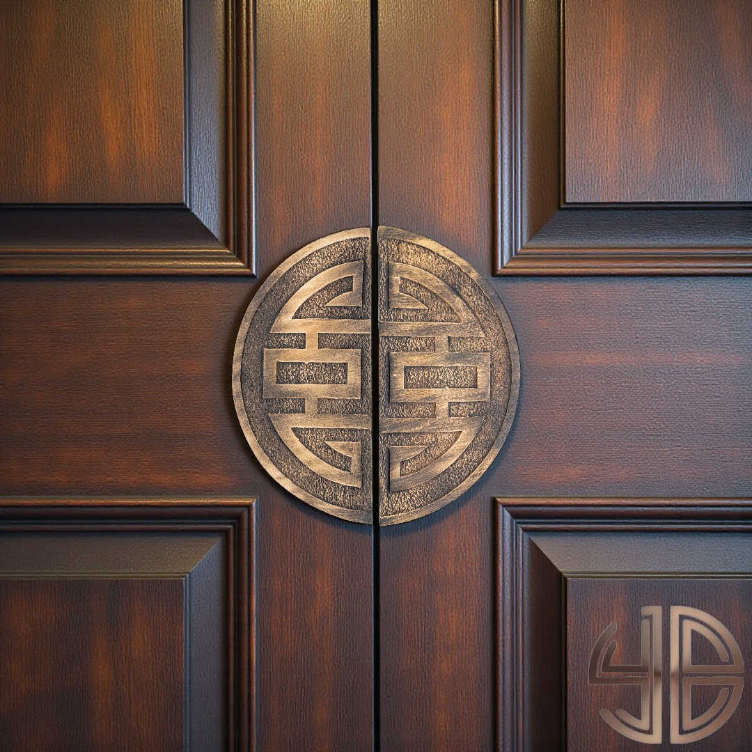 Geometrik simetriyi bir araya getiren bu çift kanat kapı çekme kolu, geleneksel Doğu Asya mimarisine özgü “Shou” sembolünden esinlenmiştir. Kum dokusuyla tamamlanan dairesel forma sahip her iki parça, birlikte sonsuzluk, denge ve uzun ömür kavramlarını temsil eder.