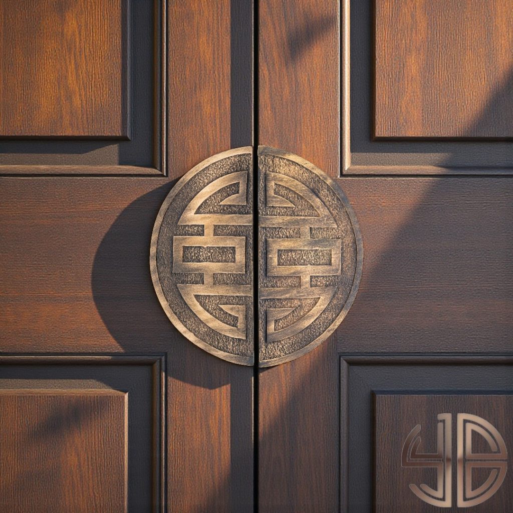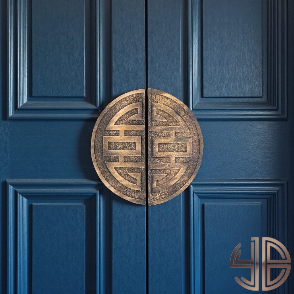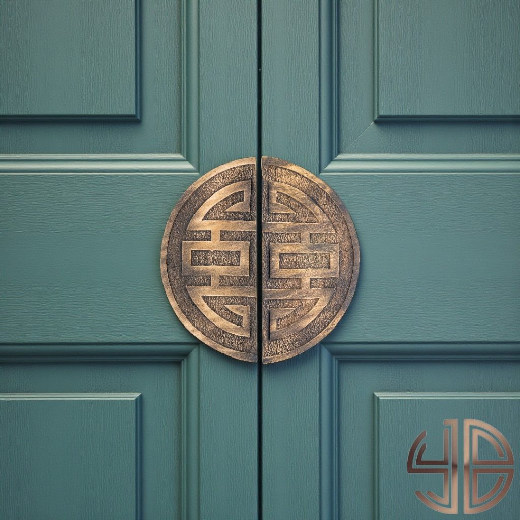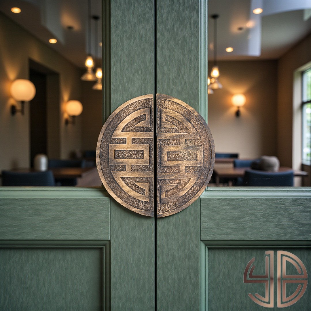 Geometrik simetriyi bir araya getiren bu çift kanat kapı çekme kolu, geleneksel Doğu Asya mimarisine özgü “Shou” sembolünden esinlenmiştir. Kum dokusuyla tamamlanan dairesel forma sahip her iki parça, birlikte sonsuzluk, denge ve uzun ömür kavramlarını temsil eder.