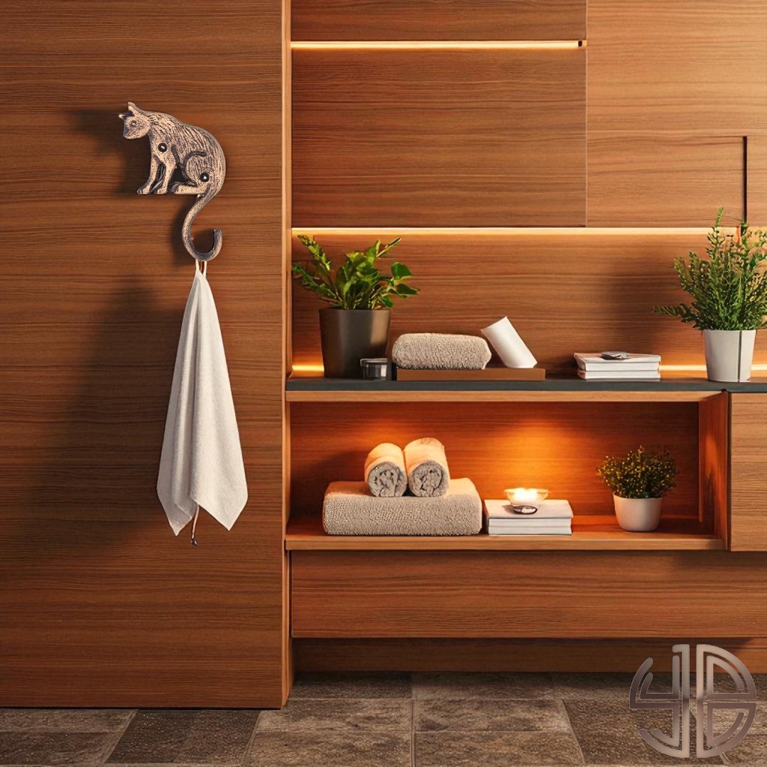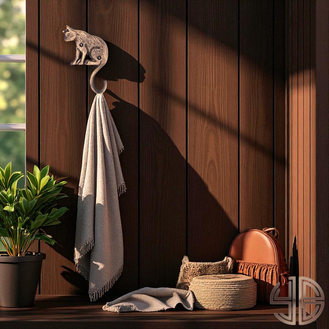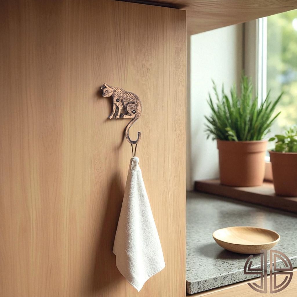 Zarif ve sevimli bir duruşa sahip bu oturan kedi figürlü askı, antik bronz eskitme yüzeyiyle modern rustik ve klasik dekorasyonlara sıcak bir karakter katar.