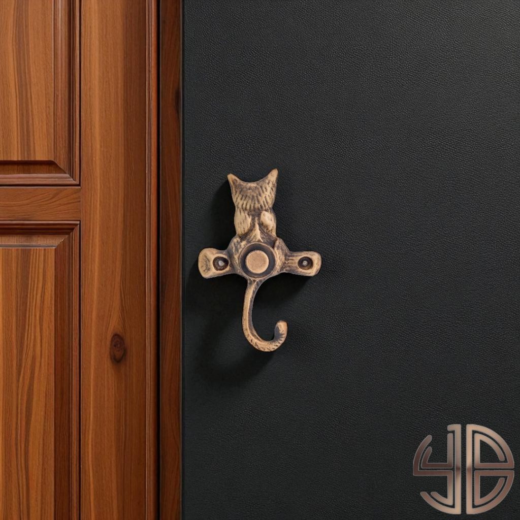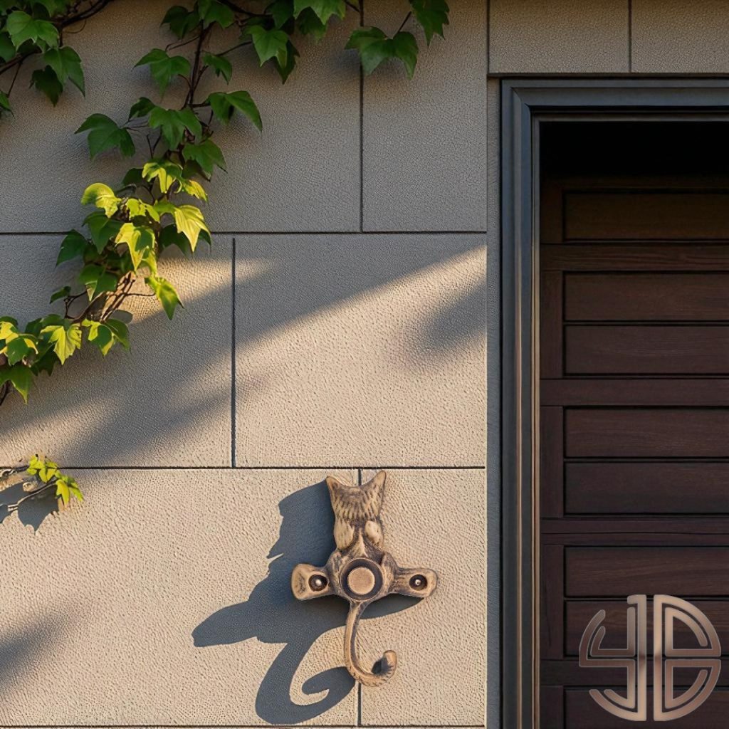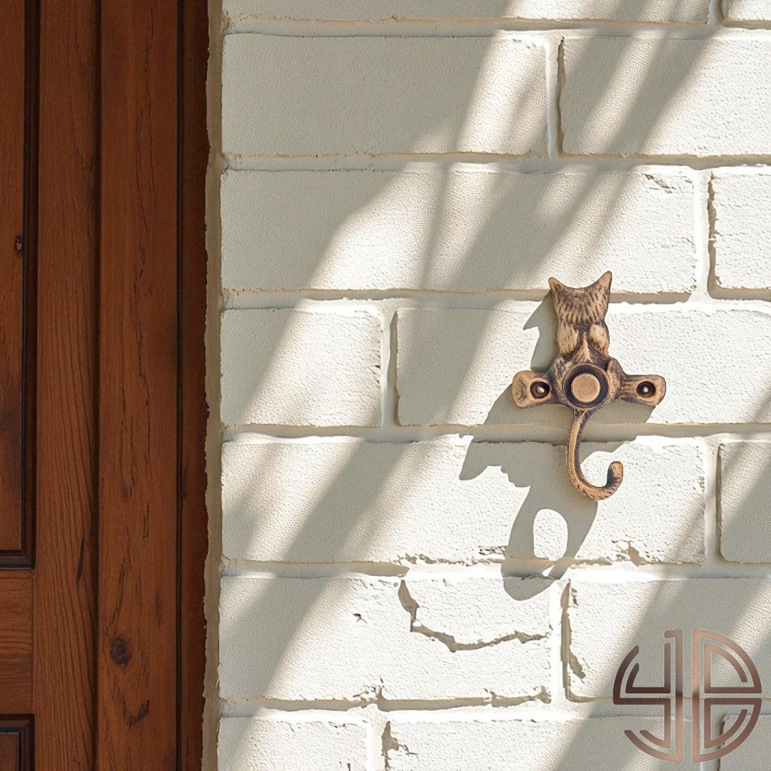 Kuyruklu Misafir Zili, sevimli bir kedinin sırtından bakılan zarif figürüyle, rustik mimarideki dış mekânlara neşe ve davetkâr bir karakter kazandırır.